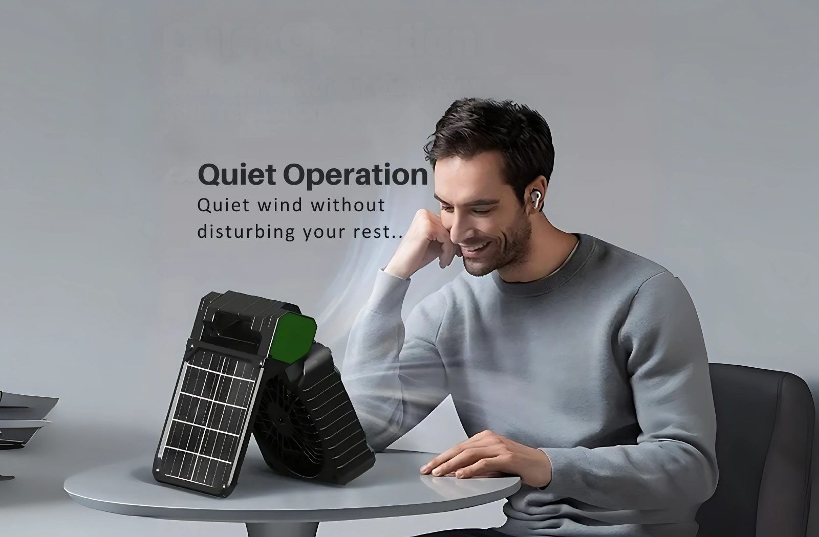 Runs at only 25 dB—whisper‑silent cooling for tents and bedrooms.